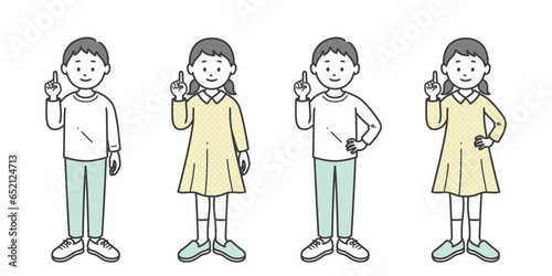指差しをする少年少女 片手