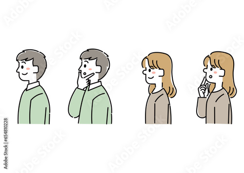 横向きの人物の男女イラストセット