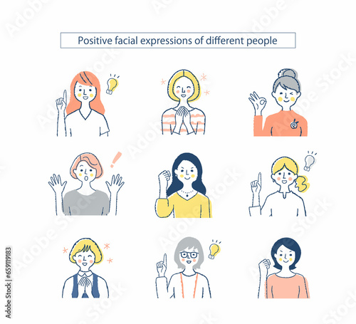 さまざまな女性の表情 ポジティブ