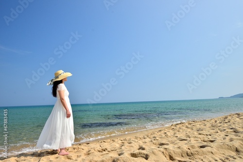 pretty, outdoors, tropical, paradise, healing, beach, resort, resort, relaxation, vacation, vacation, health, healthful, enjoyment, summer, summer getaway, woman, island, happy, travel, japanese, asian, korean, chinese, light, view, paradise, sea, healing, midsummer, sky, lovely, beauty, cosmetic, nature, tour tourism, blue skies, landscape, white, dress, angel, fairy, hat, leghorn