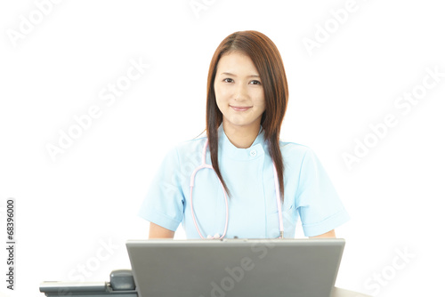 personal computer, notebook, cyberspace, woman, woman, nurse, nurse, nurse, nurse, medical care, care, welfare, health, cosmetic, smile, lovely, people, hair, beauty, model, sweet, raise, promotion, success, pretty, young, hospital, clinic, exam, marode, happy, happiness, healthful, clean, beauty, japanese, office, business, girl, white background, copy space, pose