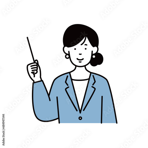 指し棒で説明する女性会社員