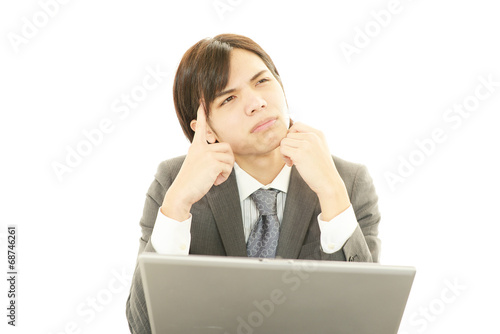personal computer, personal computer, man, man, business, businessman, people, salaried employee, health, cosmetic, face, hair, japanese, fatigue, overwork, stress, flop, anguish, damp, apprehension, overtime, depression, model, good-looking, office, clean, white background, web, unrest, downsizing, copy space, pose, work, uniform, adult, expression, japan, corporate, employee, adult, work, training, newcomer