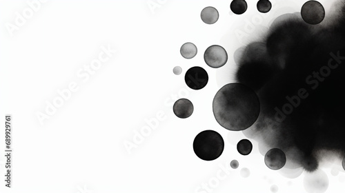 黒の水彩の丸を右側にたくさん配置した背景、コピースペース有