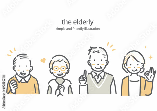 活き活きした表情のシニア世代 シンプルでお洒落な線画イラスト