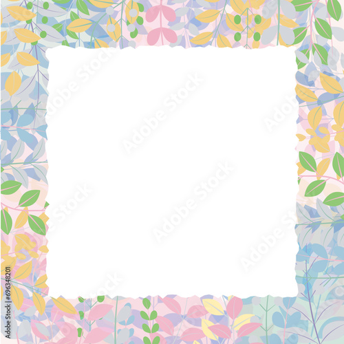 パステルピンクの植物が生えるベクターフレーム素材