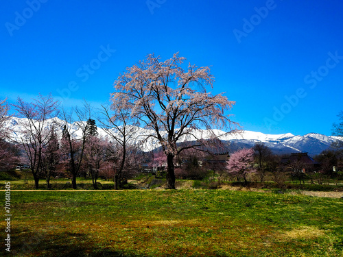 サクラの木と北アルプス