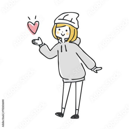 ハートと若い女性