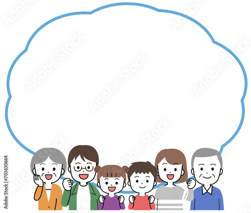 笑顔の三世代家族・ファミリーの吹き出しイラスト