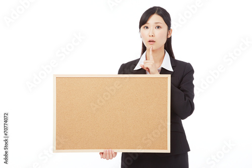 メッセージボードを持って考えるビジネスウーマン