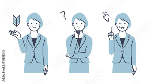 ミドルシニアのビジネスウーマン ベクターイラスト素材セット