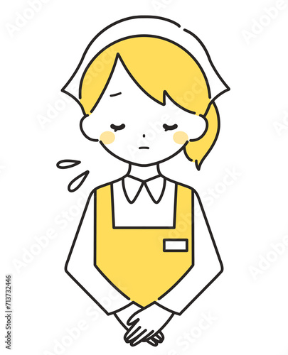 黄色|お辞儀をして謝罪する女性店員|エプロン