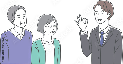 男女のシニアとスーツを着たビジネスマンのイラスト素材