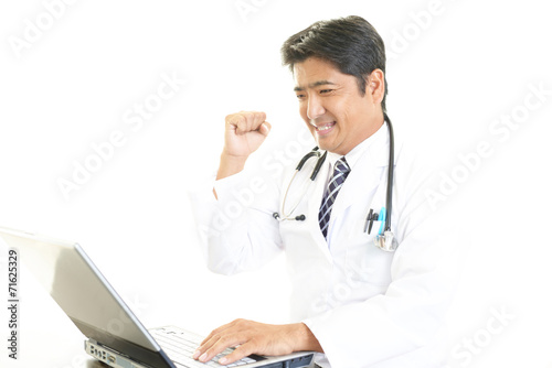 ガッツポーズの医師