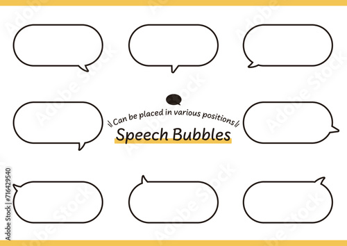 ツノの向きのバリエーションが多く配置しやすい、線幅編集可能な横長楕円のベクター吹き出しセット