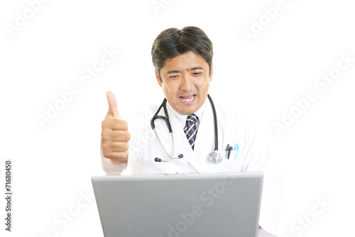 ガッツポーズの医師