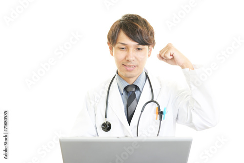ガッツポーズの医師
