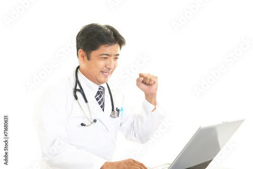 ガッツポーズの医師