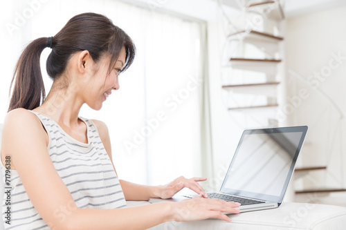 部屋でパソコンを使う女性