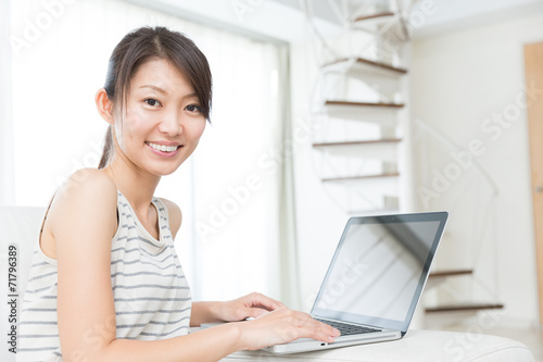 部屋でパソコンを使う女性
