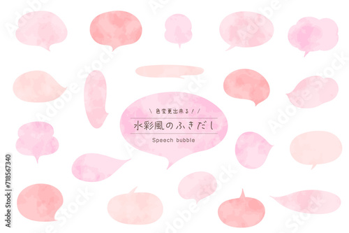 水彩風のふきだしセット/ピンク色系