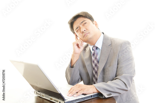 personal computer, personal computer, man, man, business, businessman, people, salaried employee, health, cosmetic, face, hair, japanese, fatigue, overwork, stress, flop, anguish, damp, apprehension, overtime, depression, model, good-looking, office, clean, white background, web, unrest, downsizing, copy space, pose, work, uniform, adult, expression, japan, corporate, employee, adult, work, training, newcomer
