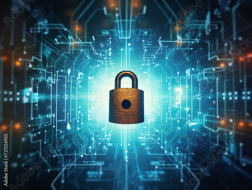 사이버 위협으로부터 보호하는 상호 연결된 방패 모양의 구조, 웹 보안, 데이터 시큐리티
