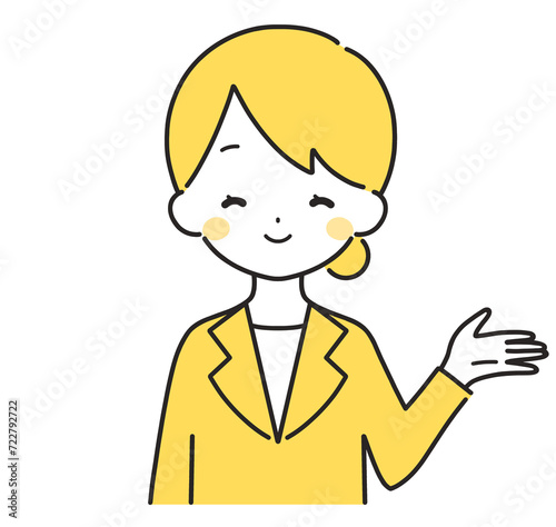黄色|案内するスーツの女性|左手