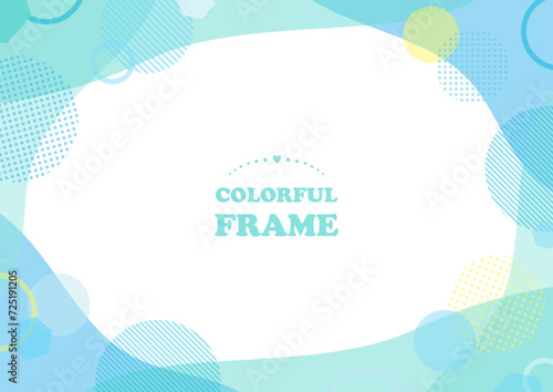 手描きのウェーブと幾何学模様の背景素材。ブルーとグリーンが夏の海のイメージ。シンプルなデザインがビジネスやセールチラシに最適。