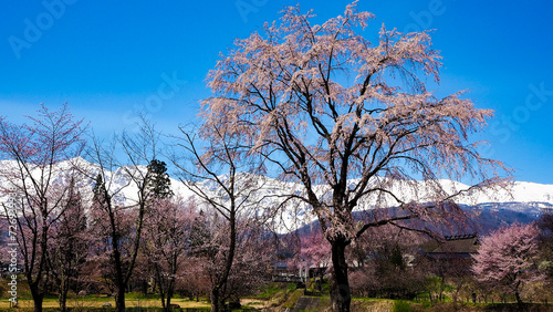 桜と残雪の北アルプス