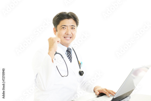 ガッツポーズの医師