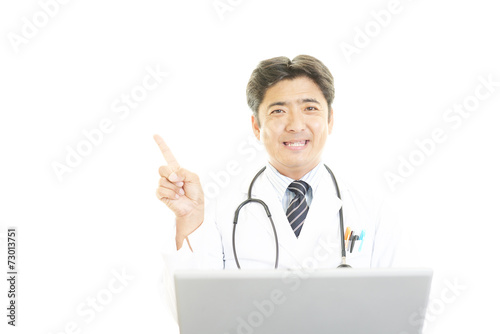 personal computer, personal computer, doctor, doctor, doctor, man, man, medical care, care, welfare, health, business, smile, people, japanese, medicine, cosmetic, face, hair, model, marode, happy, happiness, exam, diagnosis, healthful, good-looking, treatment, hospital, clinic, clinic, labcoat, japan, office, light, clean, white background, copy space, pose, work, uniform, training