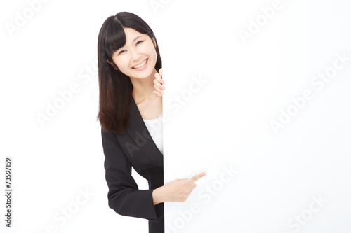 メッセージボードを指差すビジネスウーマン