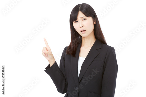 困って指差すビジネスウーマン