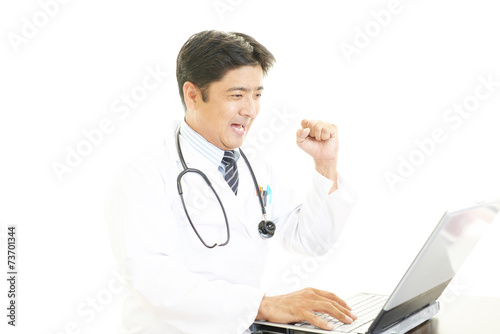 ガッツポーズの医師