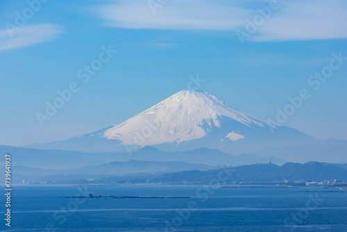 江ノ島大橋から見た海と富士山
