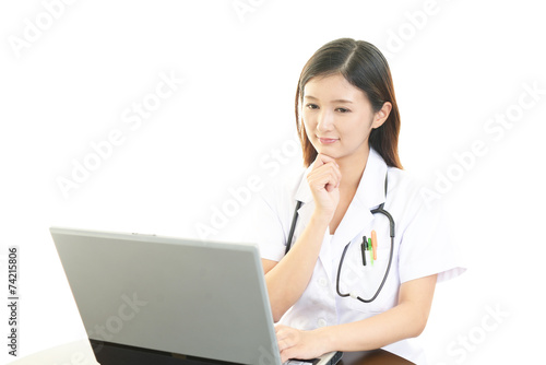 パソコンで仕事中の女医