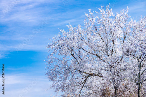 冬の和歌山・生石高原、樹氷と青空と雲、横構図