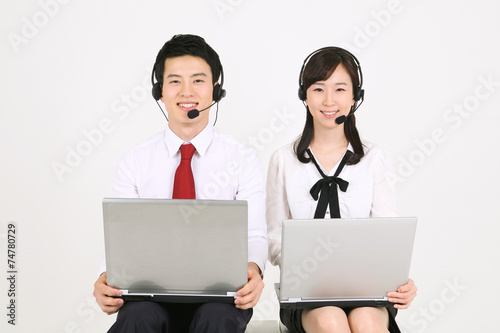 스튜디오 안의 비즈니스맨과 비즈니스 우먼
