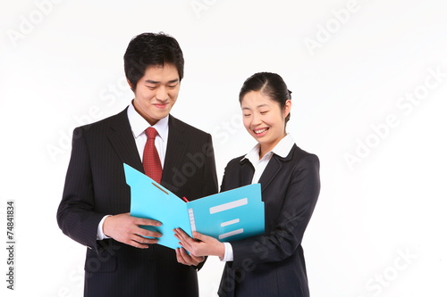 서서 제스처를 취하는 아시안 비즈니스 남성과 여성
