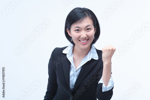 서서 제스처를 취하는 아시안 비즈니스 우먼