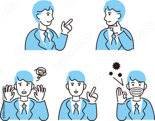 医療 病気 人物 男性 ビジネスマン スーツ 飾り あしらい シンプル ベクター イラスト素材セット