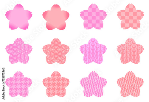 桜の和風フレームセット 素材 見出し あしらい 飾り枠 アイコン 和柄 市松模様 麻の葉 青海波 千鳥格子 紗綾形 伝統文様 おしゃれ シンプル