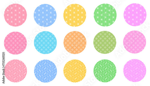 丸 和柄 素材 アイコン あしらい フレーム 飾り 見出し 枠 麻の葉 七宝 紗綾形 文様 和風 シンプル 年賀