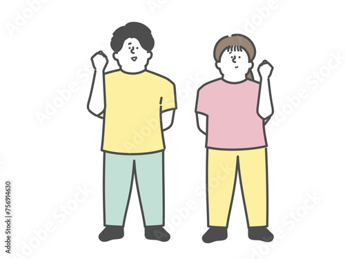 ガッツポーズをする男女の介護士イラスト