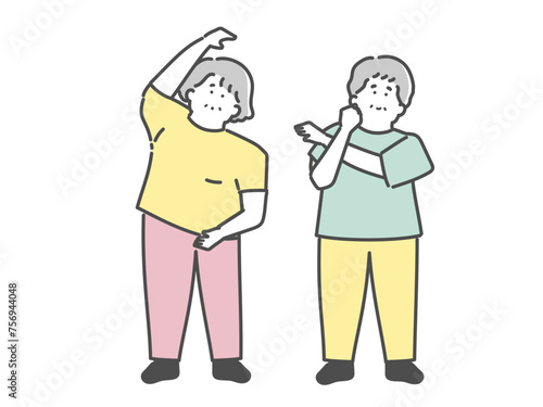 運動(ストレッチ)をする男女の高齢者イラスト