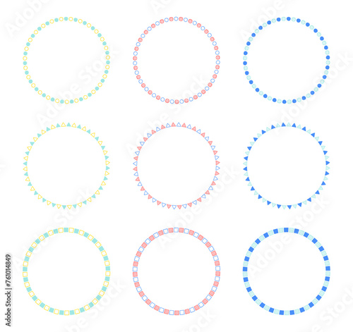 手書きの円形フレームのセット、シンプルな模様、夏の配色