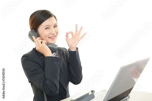 受話器を持つ女性