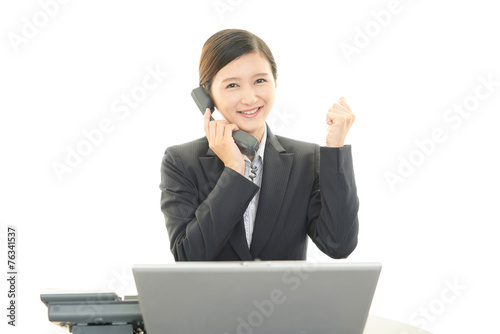 受話器を持つ女性