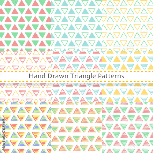 手書きの三角形のパターンセット、三角模様の背景素材、シームレスパターン